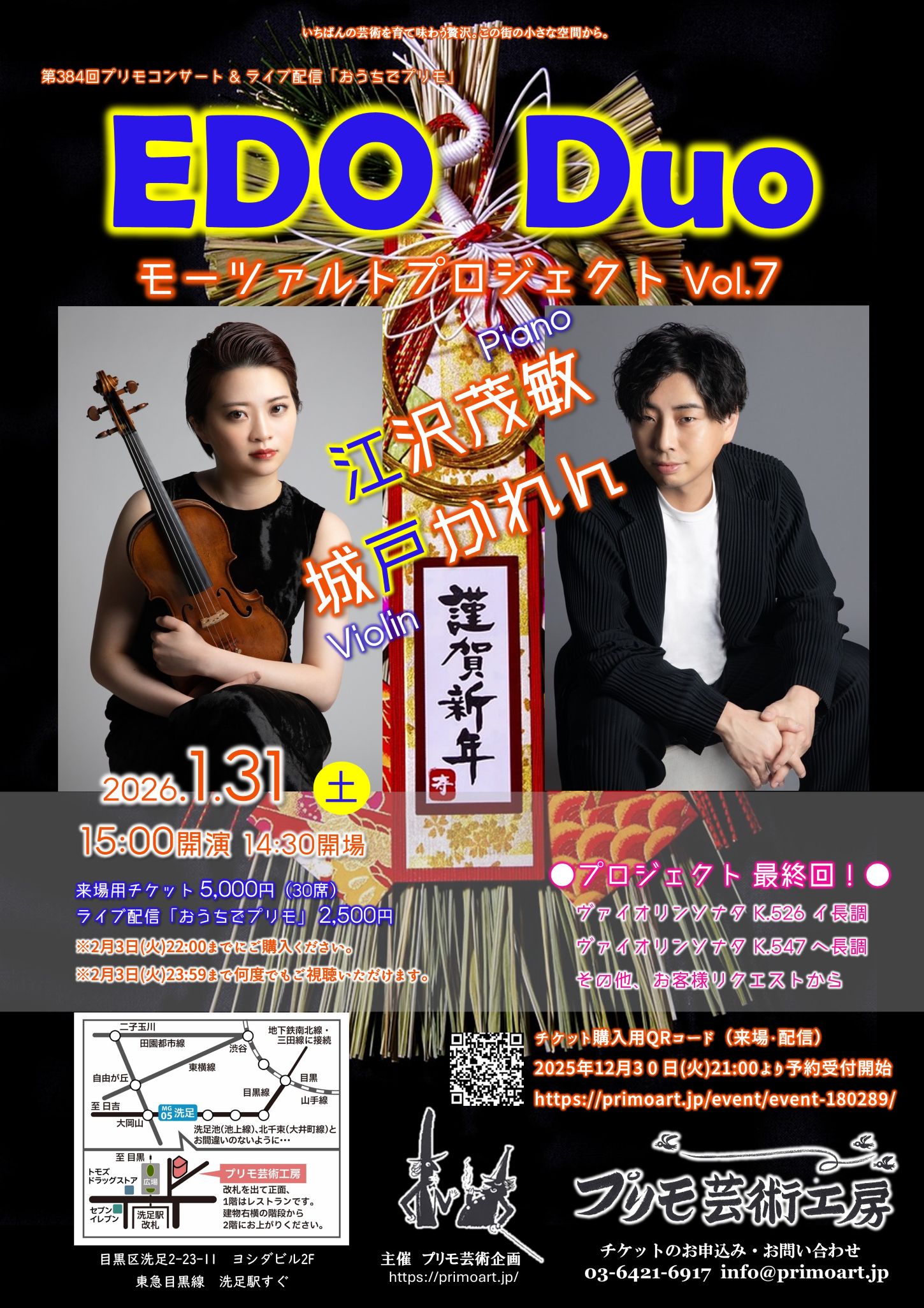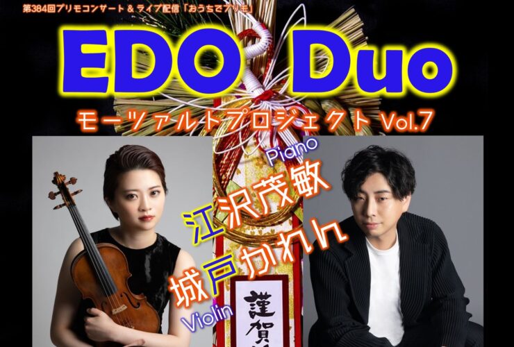 1月312026 プリモコンサート 主催公演 配信あり EDO Duo モーツァルトプロジェクト Vol.7 2022年1月から続くモーツァルト・プロジェクトがついに最終回。今回のプログラムはお客様のリクエストで決定。もう一度聴きたい曲、聴...