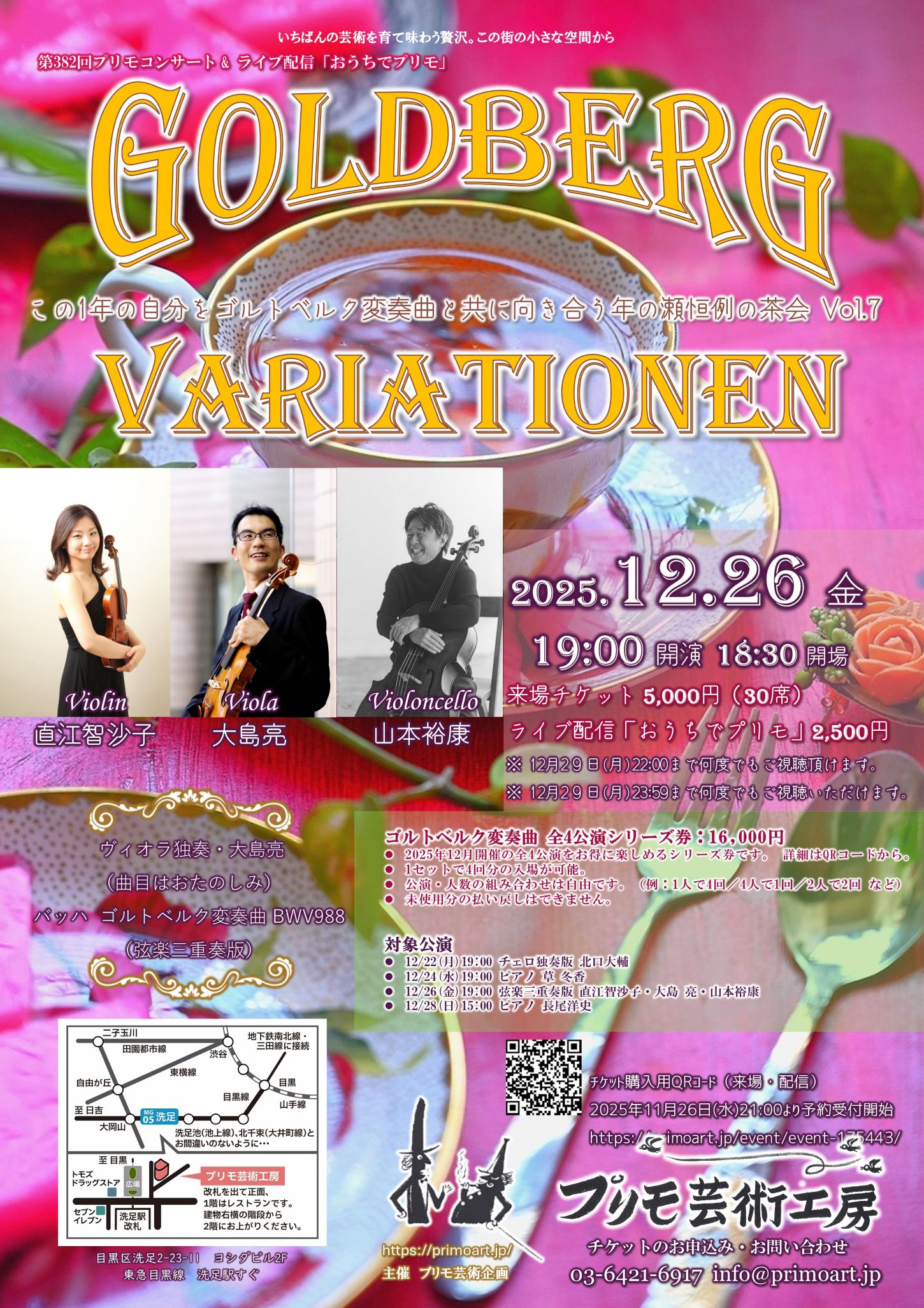 - 2025年12月に開催されるゴルトベルク変奏曲全4回の公演をお得にお楽しみいただけるシリーズ券です。